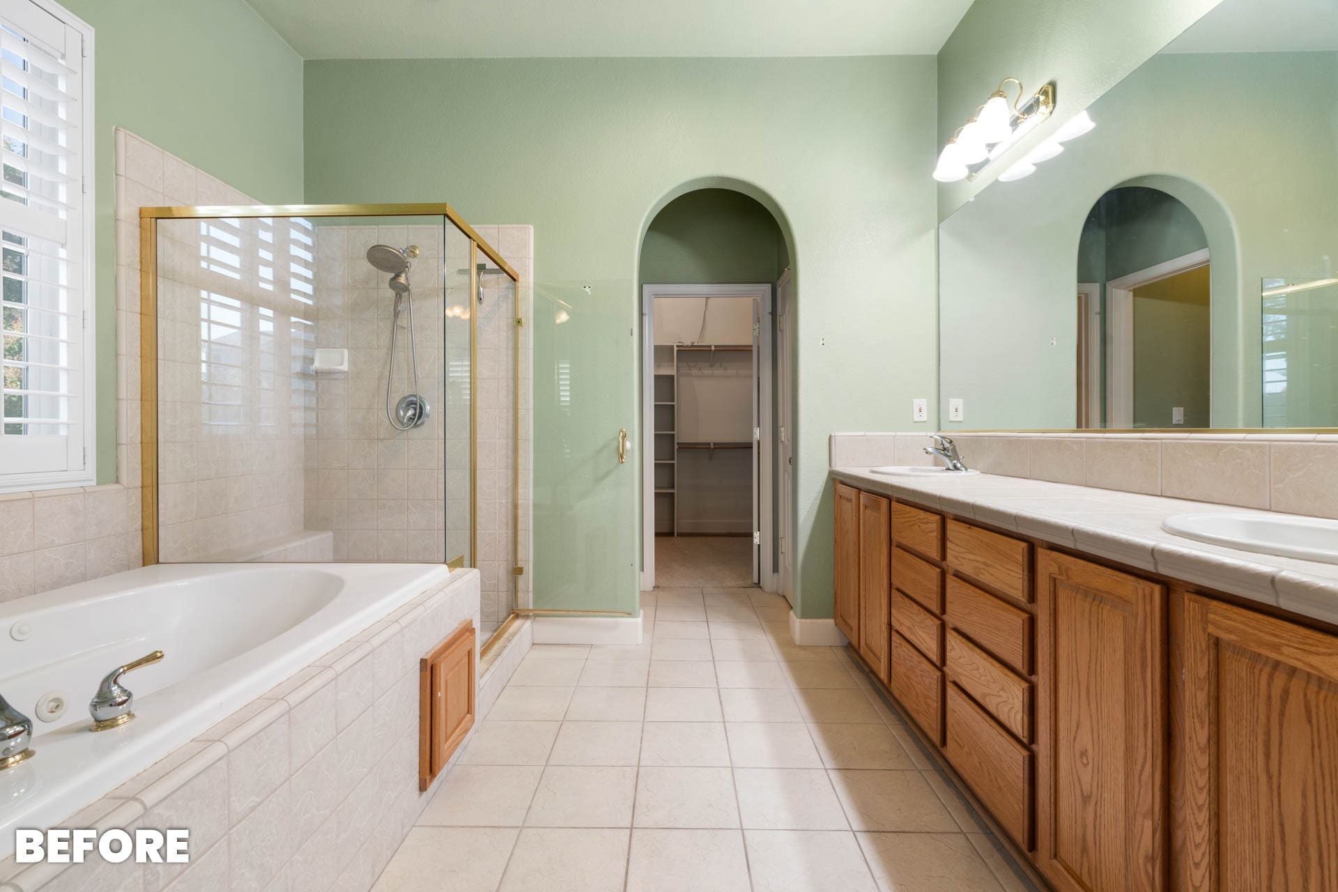 This leaky, master bathroom has been untouched since the 90s and it was time for an upgrade.