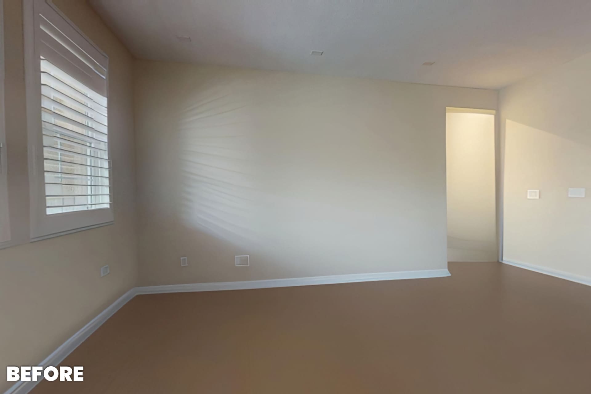 Before the remodel, the living room wall was completely bare. Whenever family and friends gathered to watch TV, the space felt unfinished and lacked character. There was no fireplace, no storage, and no visual anchor for the room.