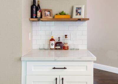 Countertops & Backsplash: The quartz countertops with soft veining add a luxurious touch to the space, providing durability and a sophisticated finish. The white subway tile backsplash enhances the clean and polished look, complementing the countertops while ensuring easy maintenance.