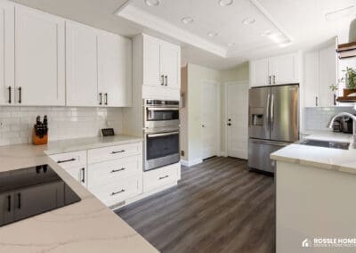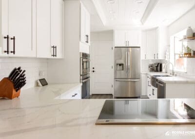 This remodel exemplifies Rossle Homesโ dedication to blending modern aesthetics with practical, high-quality craftsmanship. The combination of sleek cabinetry, luxurious finishes, and efficient layout makes this kitchen a beautiful and functional centerpiece of the home.